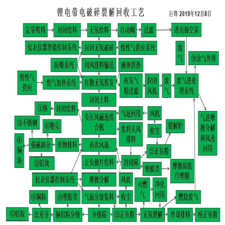 帶電的鋰電池破碎分選完整工藝流程圖——巨峰環保