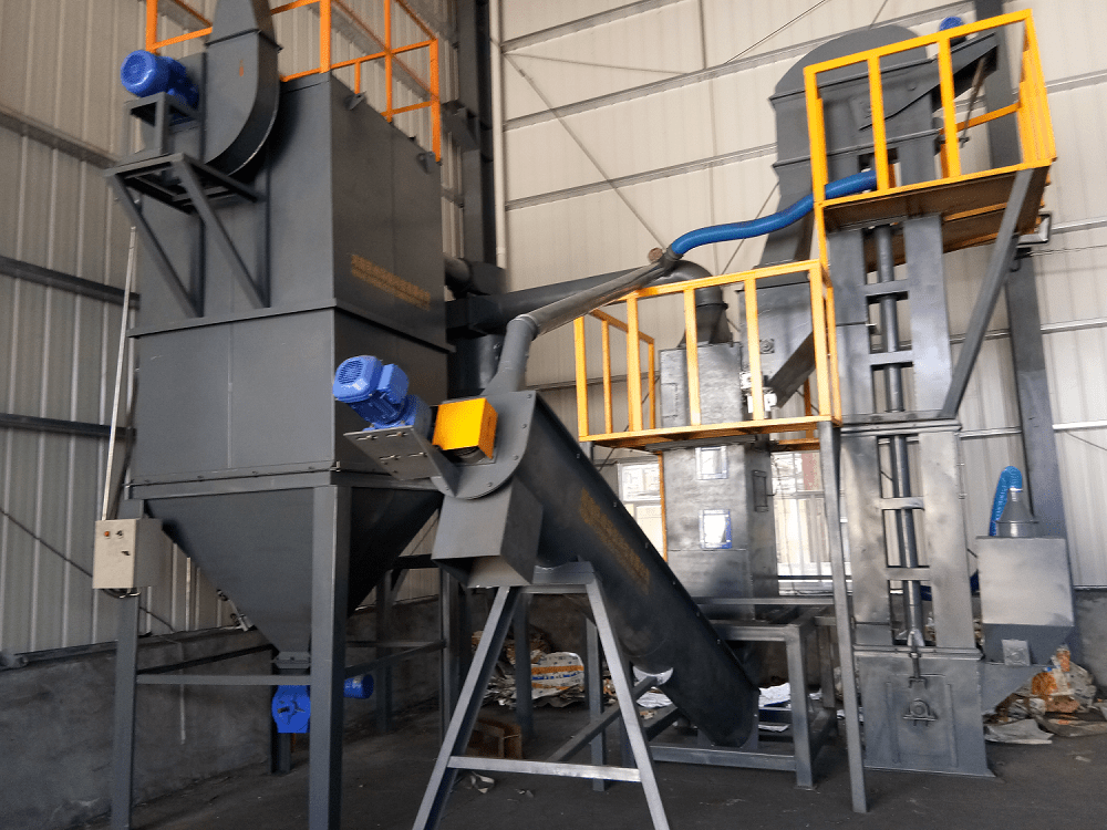 廢舊鋰電池回收處理設備采用新型處理技術,主要技術是在無氧的條件下去去進行一系列的撕碎,破碎,通過無氧給料進入無氧裂解系統,讓惰性氣脈沖設備和高溫裂解氣陶瓷過濾反應廢氣燃燒供熱循環利用。高速旋轉的磨塊與齒圈形成碰撞、摩擦、剪切多種力作用下粉碎,并將活性物質與集流體剝離,其中集流體難于粉碎,無法通過分級輪,落入粉碎機底部,由導料螺旋排出粉碎機,而活性物質中,粒徑不合格粗料落入粉碎區繼續粉碎;粒徑合格的物料通過分級輪,經循環風篩選機所產生的負壓進入脈沖除塵器中篩選出極粉和鋁粒,現廢舊電池材料的處理且不污染環境。在此過程中,首先從磷酸鐵鋰電池極片廢料破碎后的廢料中制得極粉,然后可循環使用。